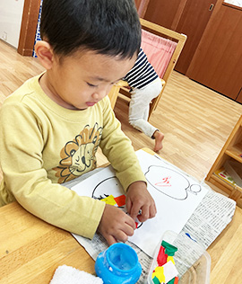 切った紙をのりで貼り付ける活動にも意欲的に取り組む姿がみられました。