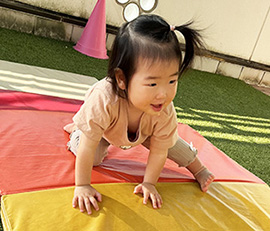 ドアが開くと、遊具にまっしぐらにかけ出します。 段々と足腰がしっかりとしてきて、